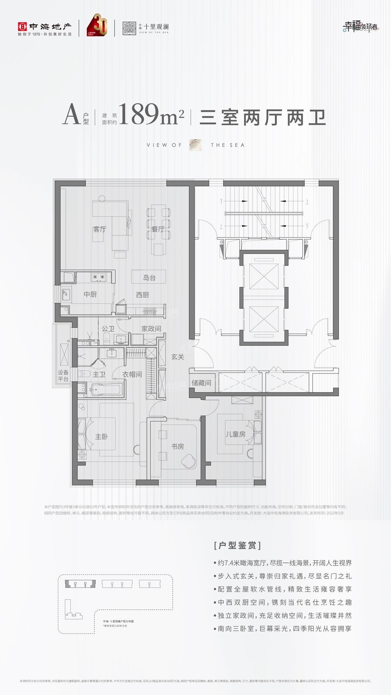 大连市中心一线观海带装修大金中央空调,西门子厨电科勒全自动卫浴两梯一户超大附属空间171平五明户型一口价:210万高区看海超高性价比