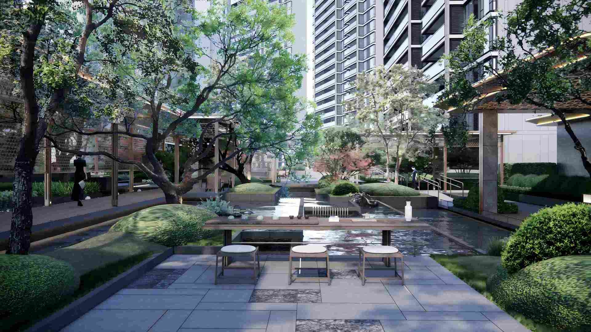 江山印二期深谙东方人居的精神内核,依托项目中部地势高差,打造“两轴、三庭、三巷、多节点” 的空间结构,将南宋《江山秋色图》的诗画意境融入园林肌理。二期斥资约300万,在架空层打造恩施企业家专属俱乐部—