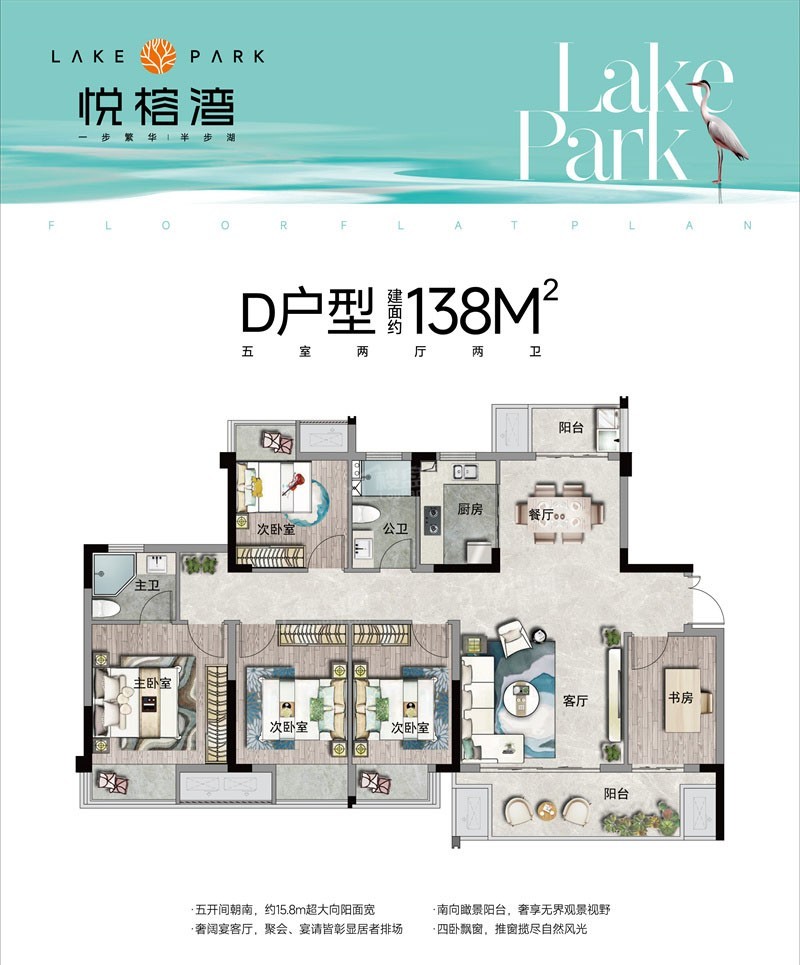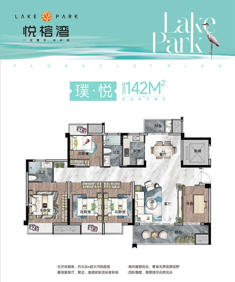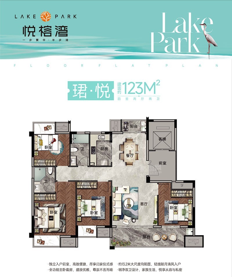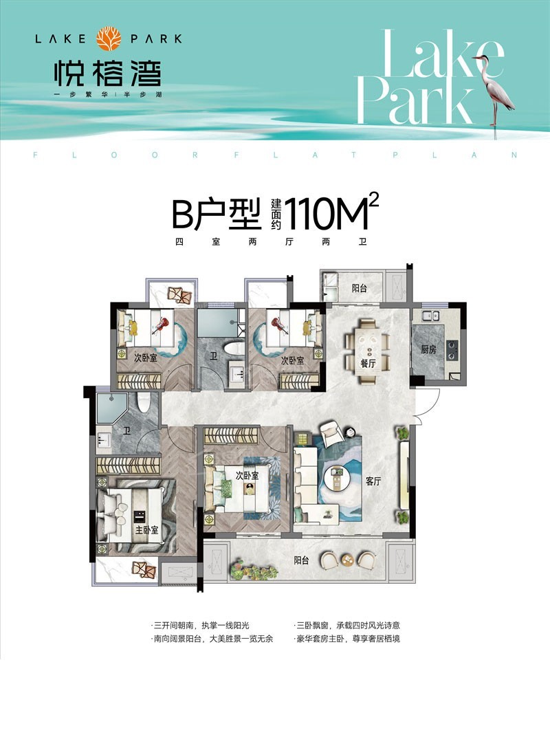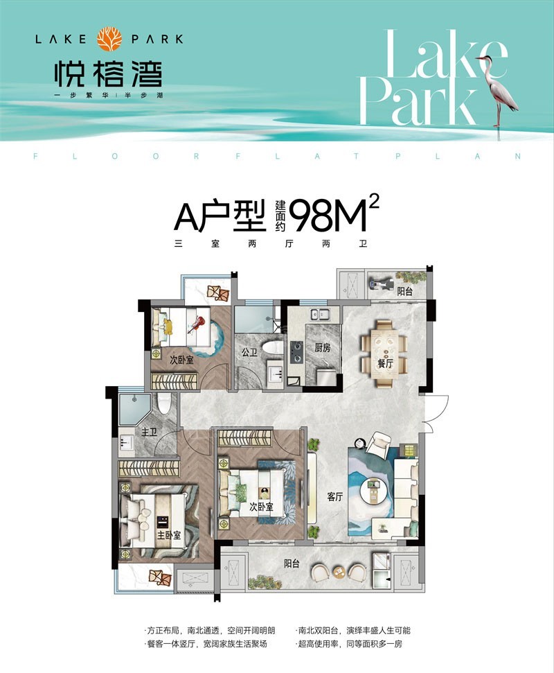【赣州悦榕湾】建面约98-143平米三至五房户型,在售均价11700元/㎡,毛坯交房,户型方正通透,户户南北双阳台,四房拥有独立入户前室!项目全盘已加推,项目总占地面积约 16347.1㎡,总建筑面积约 38473.74㎡,由7栋10-18层洋房和小高层组成,共224户,停车位 273 个。容积率 1.8,建筑密度约 20.49%,绿地率约 30.58%。【赣州悦榕湾】项目位于华坚北大道与清湖路交汇处,旁边就是金凤梅园,近享万达广场等配套。2公里范围内有赣州市杨梅小学、赣州五中、厚德外国语等10所学校。