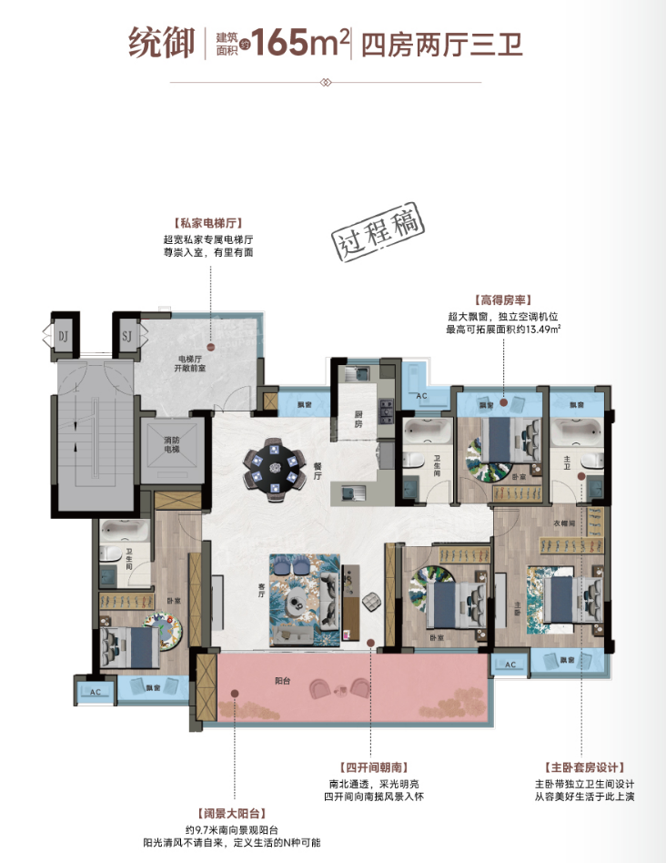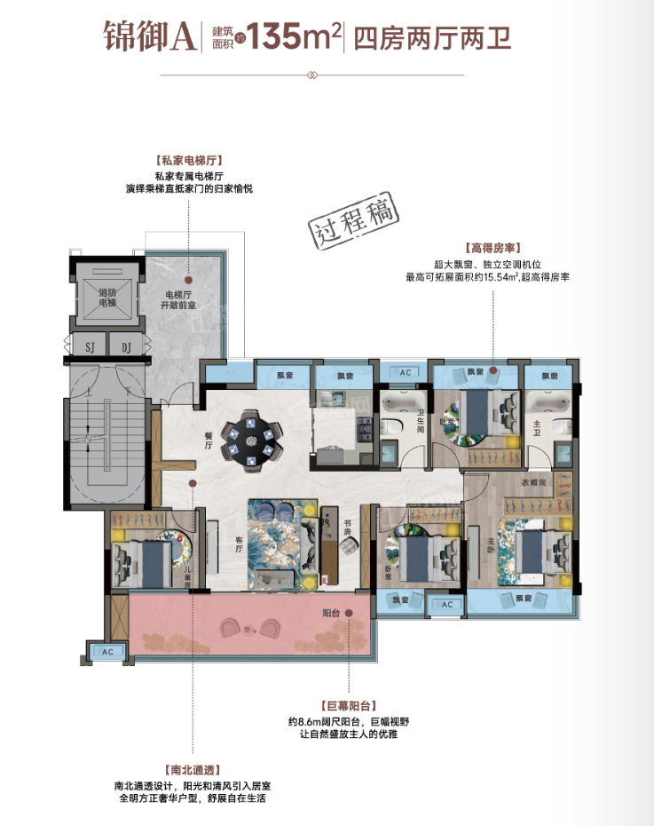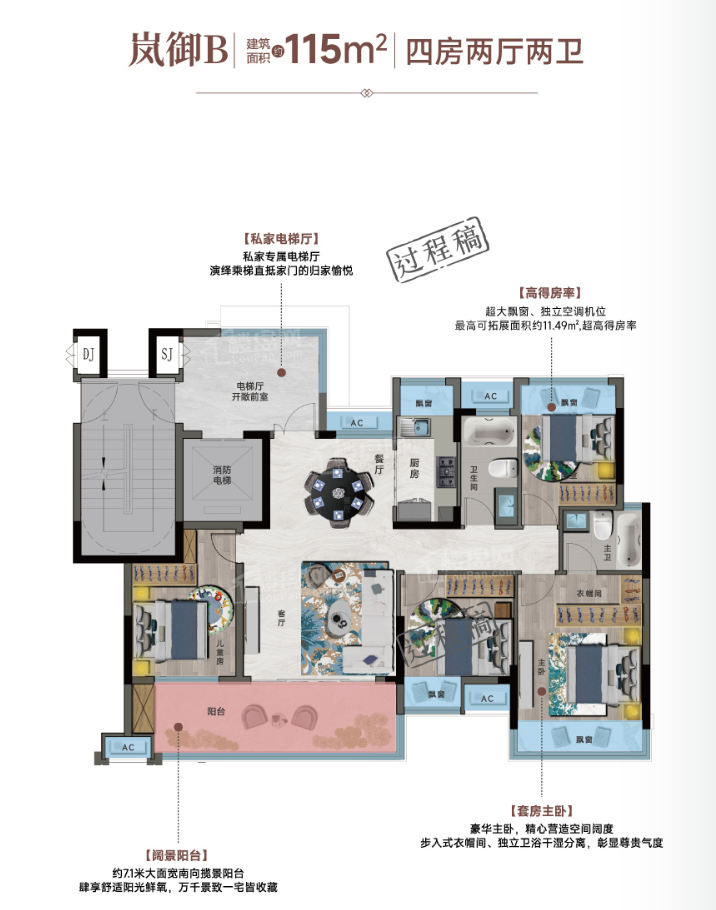 项目总建面约7.5万方,约1.8低容积率,超30%高绿化率,规划23栋11F-17F小高层,以品质匠心,匠筑城芯低密改善大盘。楼间距基本大于楼栋1:1间距(楼栋高度35-54米,楼间距40-64米),充分保证了业主的日照及采光! 地段价值:一江两岸 尽享双城繁华 蓉江御府,位于蓉江新区赣州中学旁,坐享滨江休闲板块醇熟配套。近邻平安大桥,蓉江新区、章江新区双城极速切换,共享一江两岸全维配套,尽占天时地利人和,凝萃品质人居之精髓,以良好的交通区位优势,享受全优配套。 项目做到了户户层高3.1米,其中建筑面积约165㎡户型更是做到了3.2米的层高,相比市面上常规的2.9米层高,居住立体空间多了30多平,彰显尊贵气度! 纯板楼设计,户户私家电梯,营造私属居家氛围,演绎乘梯直抵家门的归家愉悦,尊贵入户礼仪,凸显贵族风范。 采用现代建筑风格,整个住宅立面采取公建化的手法勾勒形体,于虚实交映间强化建筑的通透感,主体建筑立面上采用横向浅色线条为主,强调水平延伸感,搭配深色墙面及竖向灰色百叶,丰富立面造理; 归家的每一步都是仪式感,赋予居者双倍尊崇的归家礼遇,项目匠心设计规划双入户大堂,首层、负一层入户大堂均实施高规格装修 社区架空层是理想的公共社交场所,是业主、社群的“第二客厅”,能够为归心生活带来无限惊喜,项目打造各个年龄段架空层,满足全家人的社交休闲生活需求。 人们在寻找理想生活空间时,都更倾向于板式高层设计,板式设计的舒适性和空间尺度,一直为人称道,项目所有楼栋纯板楼设计,户户南北通透,空气通畅。 【物业】 万科物业成立于1990年,是国内第一家通过ISO9002国际质量管理体系认证的物业管理企业,也是国家一级资质物业管理企业,截止2023年6月,已覆盖全国129个大中城市,服务3274个住宅小区,是一家以住宅物业为主,围绕房屋资产保值增值提供高品质全生命周期服务,以技术驱动营造阳光健康的人居环境,让更多用户体验物业服务之美好。 超高得房率,户型产品均带超大景观阳台、卧室均设计超大飘窗,利用飘窗、空调机位、私属电梯厅规划众多可拓展面积,真正实现了住宅5.0版本的舒适度。