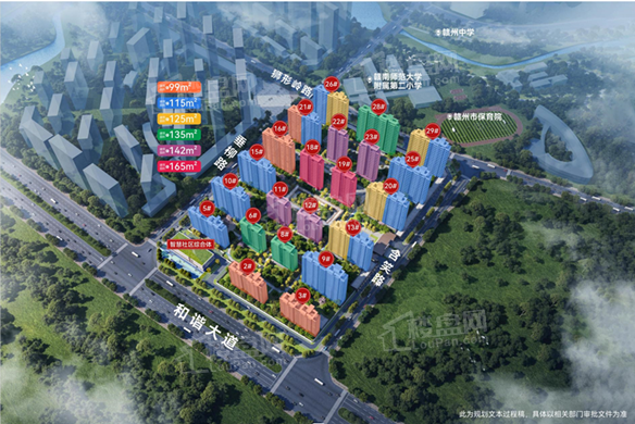 【蓉江御府】新规产品,更懂蓉江,已开放部分实景展示区,单价8字头起!项目总建面约7.5万方,约1.8低容积率,超30%高绿化率,规划23栋11F-17F小高层,推出建面约99、115、135、142、165平多种户型,毛坯交付,以品质匠心,匠筑城芯低密改善大盘。纯板楼设计,户户私家电梯。楼间距基本大于楼栋1:1间距(楼栋高度35-54米,楼间距40-64米),充分保证了业主的日照及采光!【蓉江御府位置】项目位于蓉江新区赣州中学旁,坐享滨江休闲板块醇熟配套。近邻平安大桥,蓉江新区、章江新区双城极速切换,共享一江两岸全维配套,尽占天时地利人和,凝萃品质人居之精髓,以良好的交通区位优势,享受全优配套。项目旁边有赣师大附属二小、蓉江保育院、蓉江新区赣州中学、赣南医科大学、赣州师范专科学院、十里花溪公园、狮形岭公园、新世纪运动公园、全民健身中心、新旅艺术综合体、十里花溪游乐园、新旅泰迪寰球冰雪世界、麋鹿星球、新世纪公园儿童游乐场、网红沙滩、滨江休闲公园等配套。点击下方报名立减8888优惠,具体以楼盘网工作人员联系您时间为准!