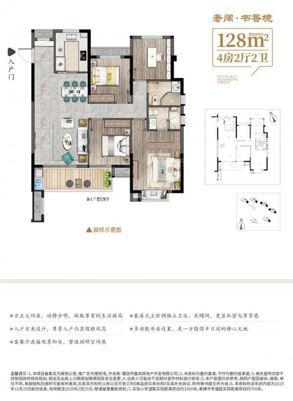 三盛璞悦湾明星户型:108-128㎡3-4室房户型赏析。户型设计合理,功能齐全,满足不同业主的需求。项目占地面积20897,三盛璞悦湾项目参考均价9000元/㎡,位于涵江区人民街与南环城路交汇处。项目开发商为莆田市盛祥房地产开发有限公司,品牌房企,购房更安心。小区环境舒适,绿植覆盖率高,绿化率30%,车位充足,车位数量共563停车位。三盛璞悦湾项目附近医疗配套完善,有多家医院和诊所,为业主提供了及时的医疗服务,主要有涵江区三江口镇卫生院,莆田市涵江区妇幼保健院,涵江现代妇科医院,涵江现代妇科医院-急诊,红口镇卫生院。商业也较为繁华,有超市、餐厅等,比如水韵城天虹购物中心,凤凰百货(延宁店),凤凰百货(新涵店)。“以上信息仅供参考,详情具体可致电售楼处咨询”。