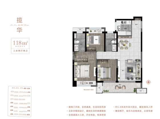 卓越华耀时代共有6个户型,当前有6个户型在售,130㎡的4室、125㎡的3室、118㎡的4室、118㎡的3室、112㎡的3室、106㎡的3室。具体户型情况如下
