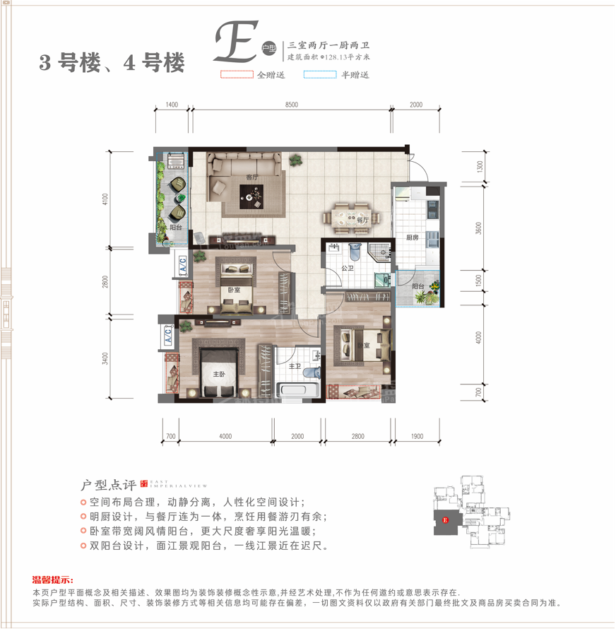 东方帝景项目在售均价2980元/平米,多户型房源在售,房源概况如下:东方帝景A户型:户型面积约108.81 平米,为3室2厅2卫,户型周正,双卫生间设计,南北通透,功能分区布局合理;东方帝景B户型:户型面积约135.30 平米,为三室两厅两卫,户型周正,双卫生间设计,南北通透,功能分区布局。东方帝景C户型:户型面积约88.00 平米,为两室两厅一卫,户型周正,南北通透,功能分区布局合理;东方帝景E户型:户型面积约128.13 平米,为三室两厅两卫,户型周正,双卫生间设计,南北通透,功能分区布局合理;以上信息仅供参考,具体信息以售楼处公布为准,有意者可电话咨询售楼处。东方帝景在售参考价格:参考起价2980元/㎡楼盘地址:贵州省铜仁市思南县中关坝东方帝景营销中心楼盘电话:4008180066 转 018634目前项目执行的折扣为:按揭99折+准时签约98折+金蛋最高10000元+老带新5000元;全款95折+准时签约98折+金蛋最高10000元+老带新5000元。限时200套修房(130平米价值20万装修),具体情况以营销中心解释为准!姓名:手机:我已阅读并同意《楼盘网用户服务协议》