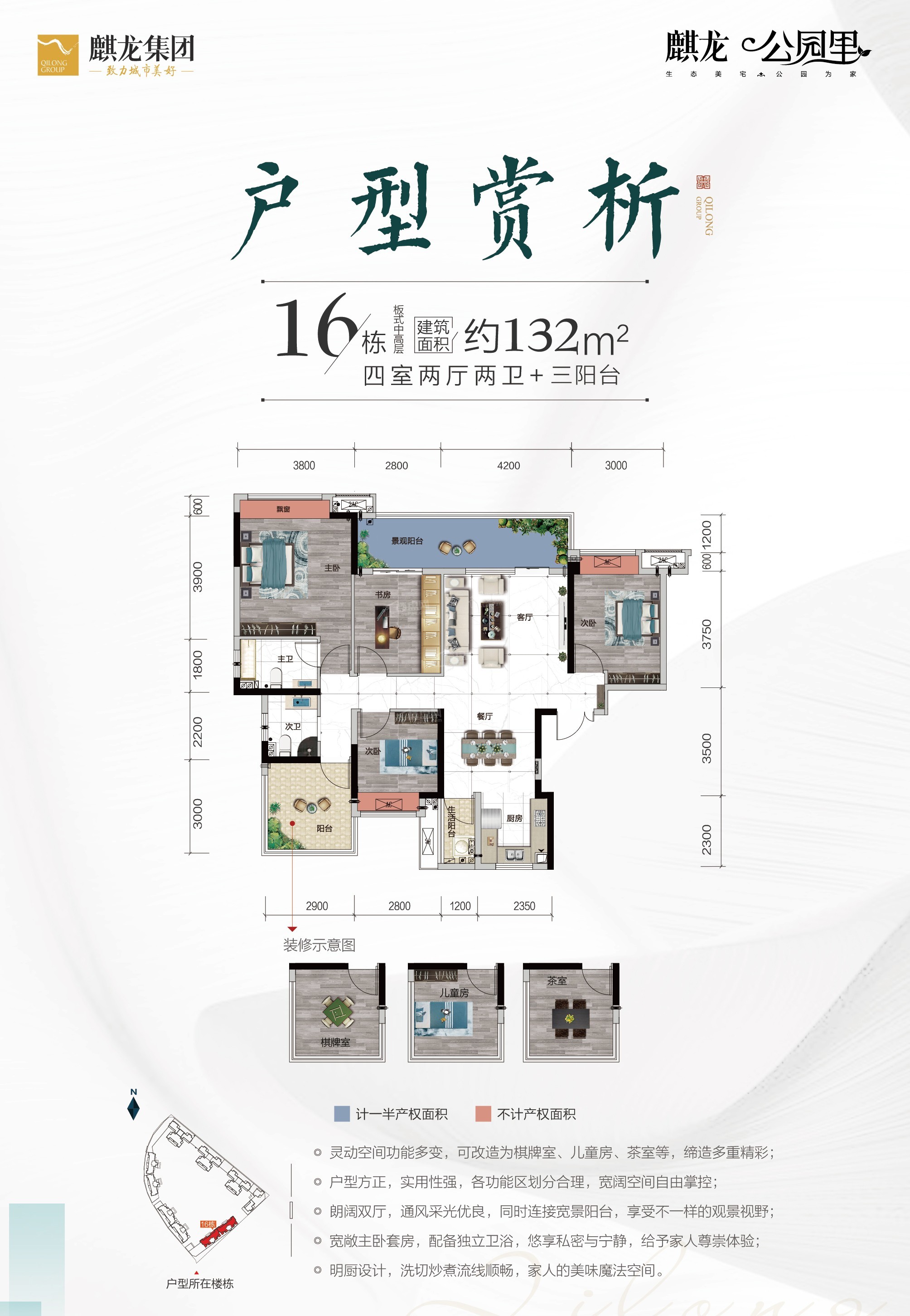 目前麒龙·公园里参考价格为3900元/㎡,与周边的楼盘相比,小区绿化多,容积率低,是性价比比较高的项目。