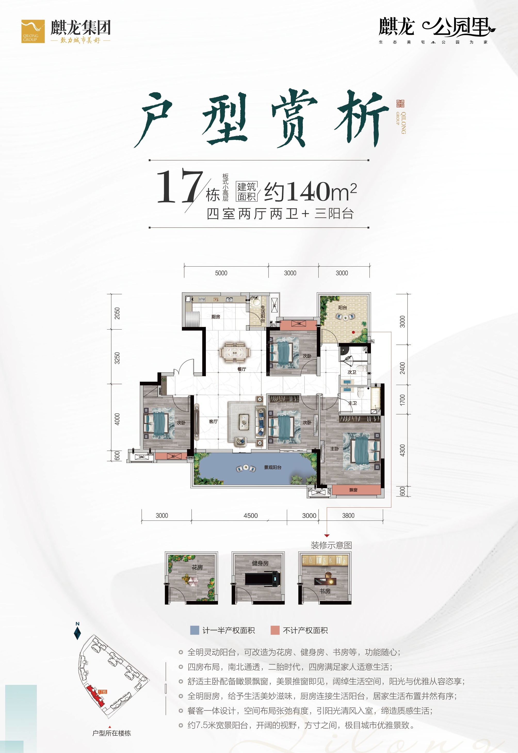 在售均价 4300 元/㎡ 127-165㎡