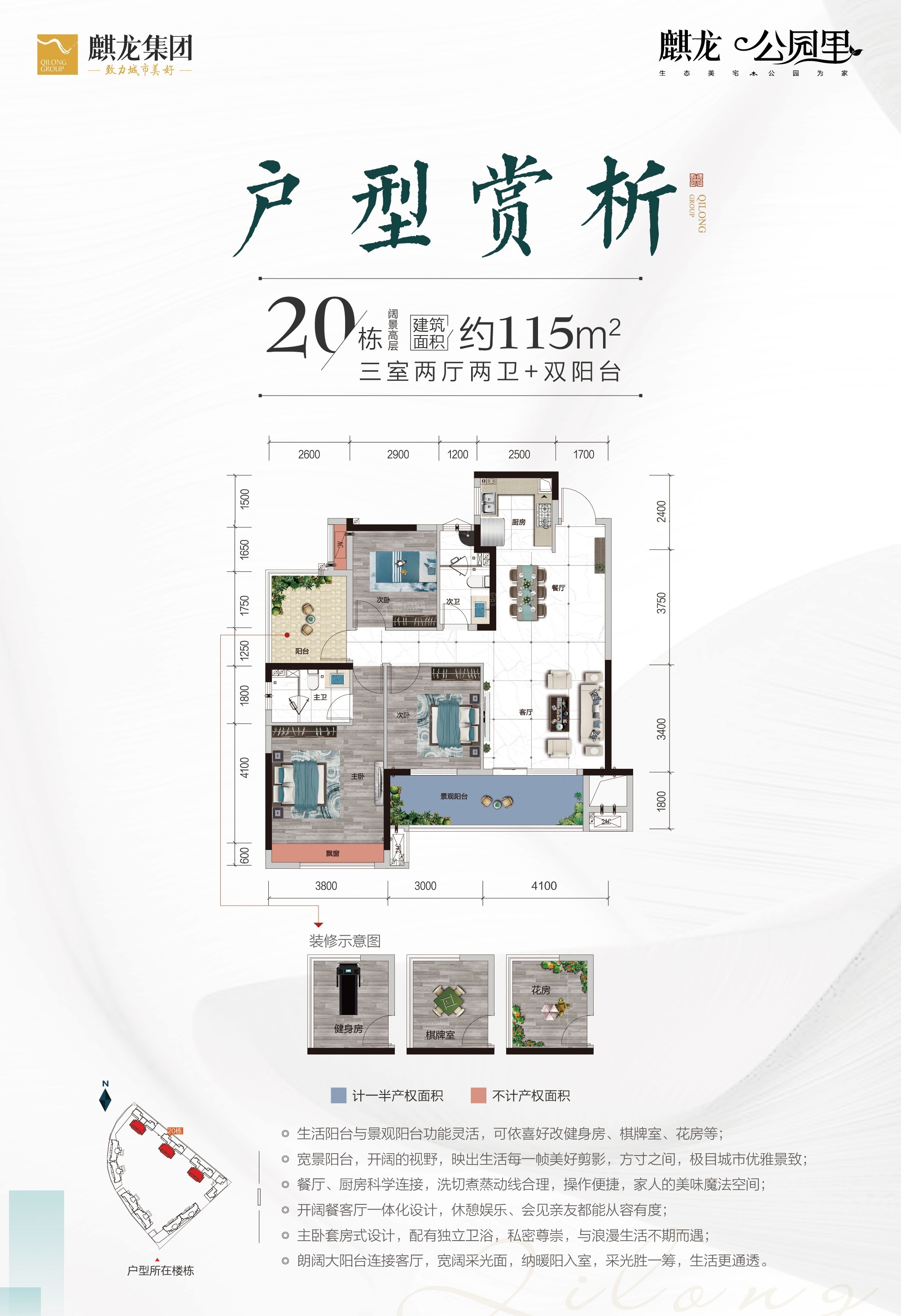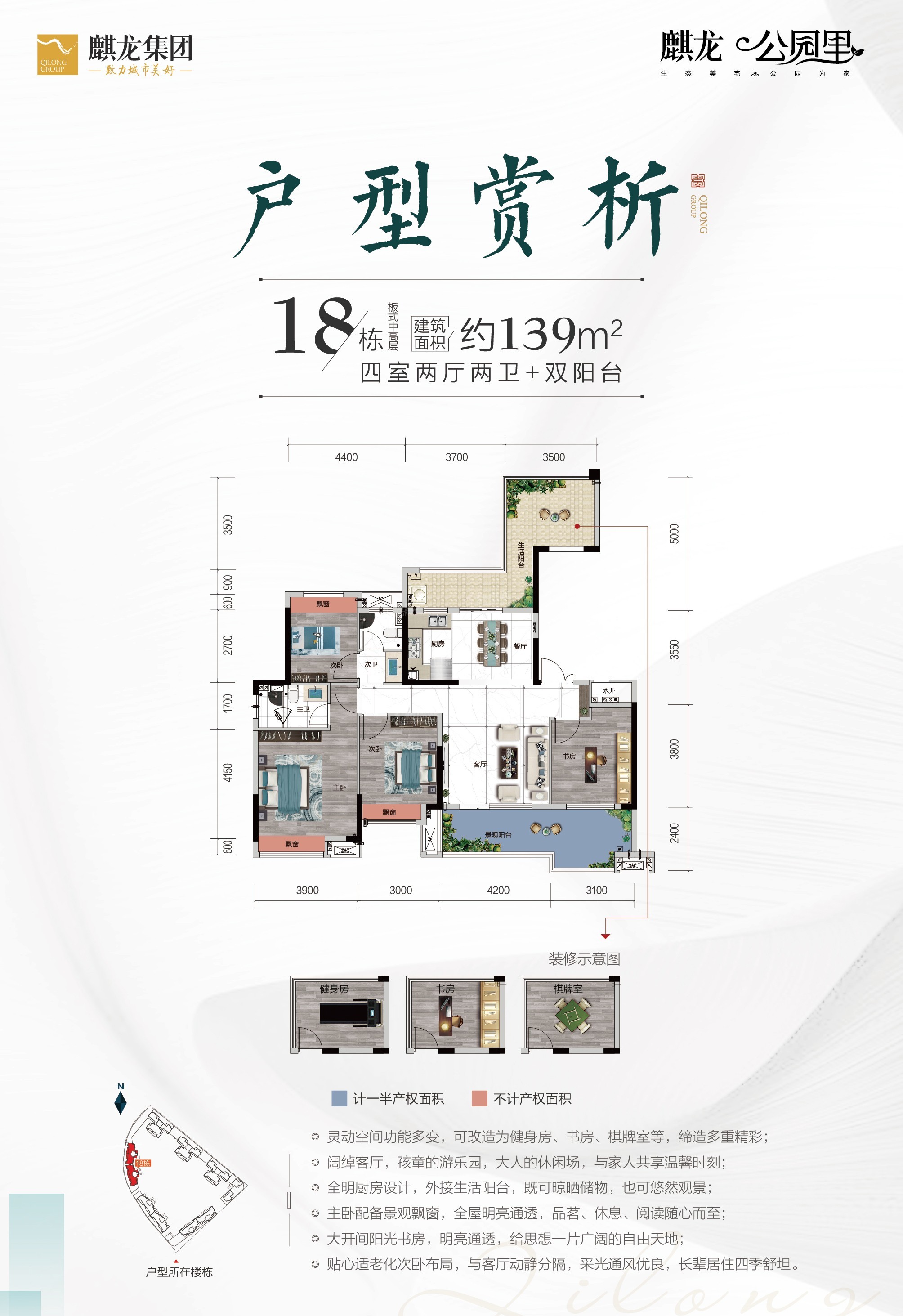 麒龙·公园里项目占地面积162.21亩,二期预计开盘时间为2022年3月份已开盘,在售均价约3900元/㎡,主力户型为115-142㎡3-4室。项目位于德江县武陵大道-北京路中段幸福公园旁、一起以交付入住,二期预计交房时间为2023年年底入住;毛坯交付交付。麒龙·公园里项目总建筑面积40万方,2430户,由贵州麒龙集团(德江)公园里置业有限公司开发建设。麒龙·公园里项目车位充足:2546。并且项目附近有商业:;有学校:德江县第四幼儿园,大拇指幼稚园,团结街民族幼儿园,玉水街道四坪幼儿园,阳春幼儿园等周边设施完善。“以上信息仅供参考,详情具体可致电售楼处咨询”。