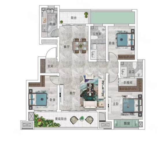 铂樾上境共有4个户型,当前有4个户型在售,129㎡的3室、120㎡的3室、145㎡的4室、131㎡的3室。具体户型情况如下